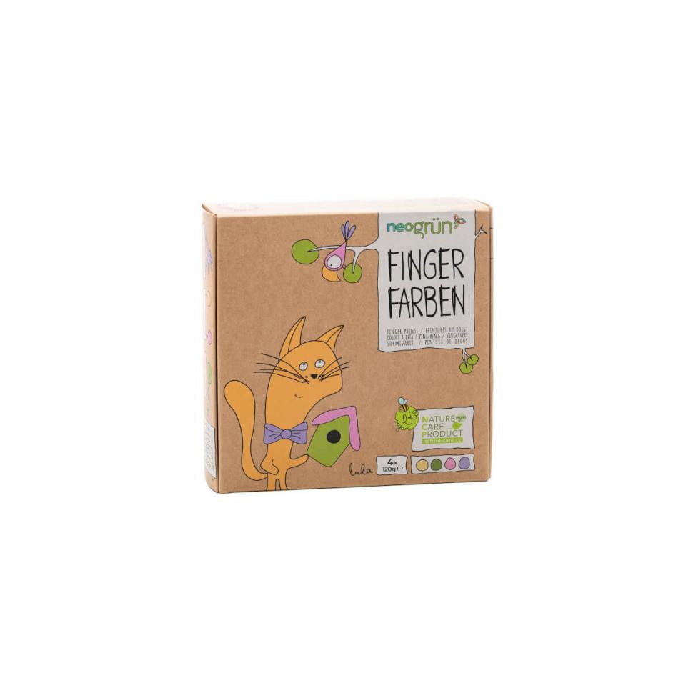Farben: gelb, grün, pink, violett. Wenn Katze “Luka“ nicht gerade andere Tiere ärgert, dann sind unsere cremig bunten Fingerfarben die erste Wahl. Luka bemalt liebend gern seine Vogelhäuschen in gelb, grün, pink und violett. neogrün Bio-Fingerfarben sind der perfekte Spaß für jedes Alter, der die Freiheit des unbegrenzten Spiels mit der sicheren Sinneserfahrung verbindet. Hergestellt aus natürlichen, nachwachsenden Bio-Rohstoffen mit sicheren pflanzlichen und mineralischen Pigmenten. Die besonders cremige, tropffreie Konsistenz und extraflache Becher machen neogrün Fingerfarben zu einem besonderen Erlebnis und sind ideal für kleine Künstler. Frei von Weizen, Soja, Erdnüssen und Baumnüssen, Milch, Fisch und Eiern.ACHTUNG! Kinder unter 3 Jahren sollten von Erwachsenen beaufsichtigt werden.